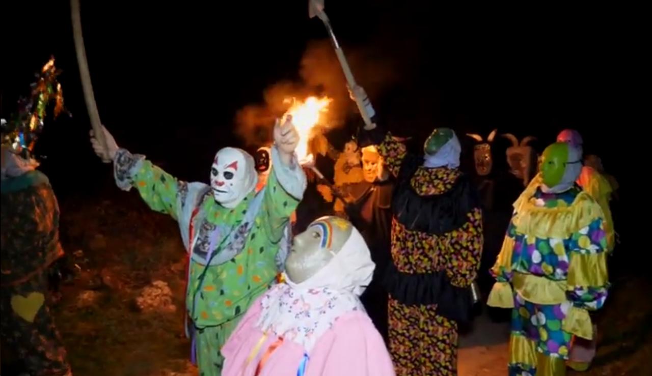 A festividade termina no momento da entrada na Quarta-feira de Cinzas. Precisamente à meia-noite de terça-feira de Carnaval, três demónios iniciam uma procissão noturna, solene e simbólica, pelas ruas da aldeia até entrarem no salão de baile. Nesse momento, cessa toda a diversão, música e dança. Estas enigmáticas personagens vêm anunciar que chegou o momento da penitência, do jejum e da abstinência.