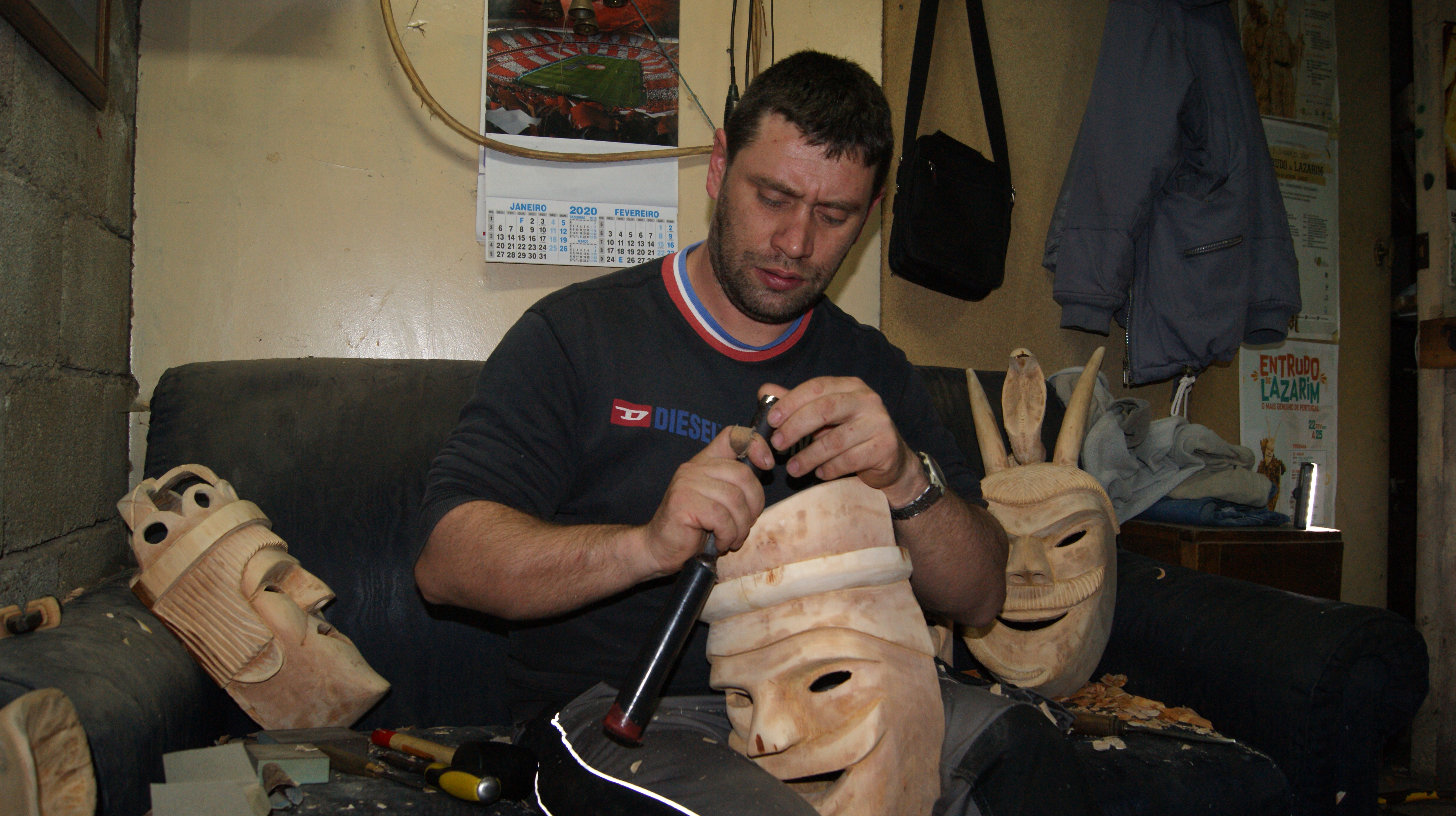 Construtor de máscaras tradicionais do Entrudo de Lazarim.