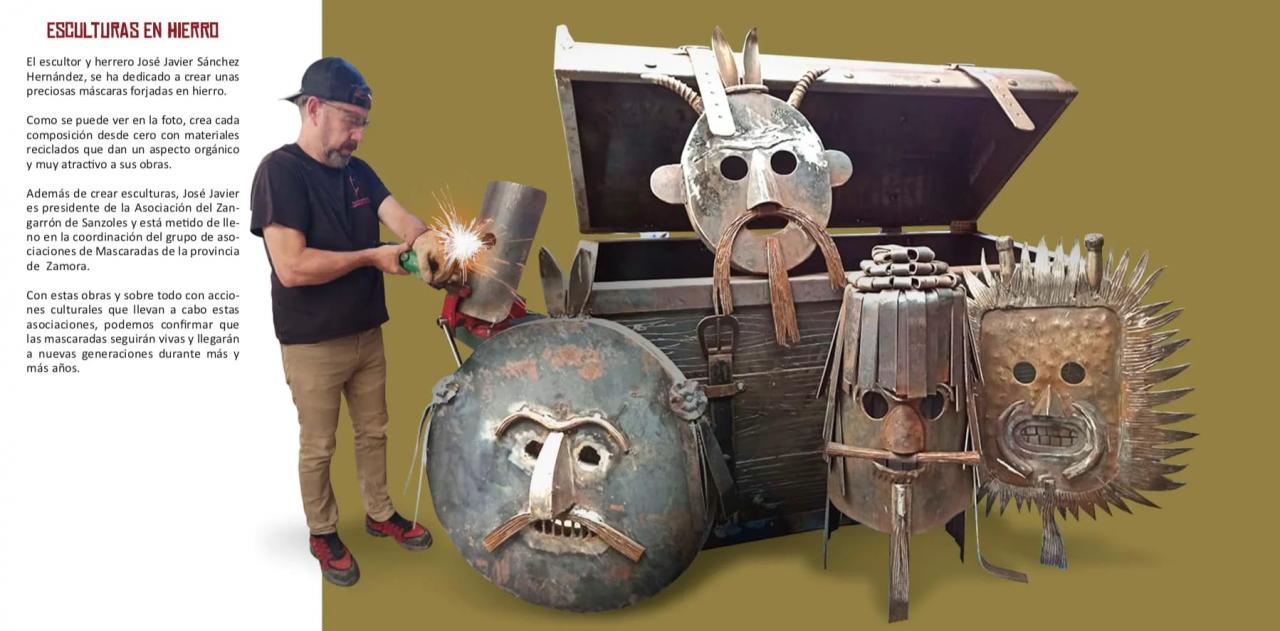 y trabajos artesanales sobre las mascaradas, el Zangarrón que está en el museo de Bragaça y los que están en el museo de Sanzoles (Zamora) además de miniaturas de nuestras mascaradas.